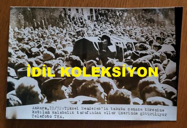 ADNAN MENDERES'İN OĞLU YÜKSEL MENDERES'İN CENAZE TÖRENİNİN HABER METİNLİ ORİJİNAL AJANS-BASIN FOTOĞRAFI - 18 x 12 cm EBADINDA -1972 başlıklı ürün, Efemera, Müzik, Sinema > Fotoğraflar > Diğer kategorisi altında İkinci El olarak satılmaktadır.