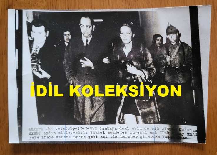 ADNAN MENDERES'İN OĞLU YÜKSEL MENDERES'İN İNTİHARINDAN SONRA İFADE VERMEYE EŞİYLE BİRLİKTE GİDEN İPEK KUMBARACIBAŞI'NIN ORİJİNAL HABER METİNLİ AJANS-BASIN FOTOĞRAFI - 18 x 12 cm EBADINDA -1972, en son 3 ay önce güncellenmiştir.