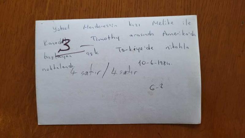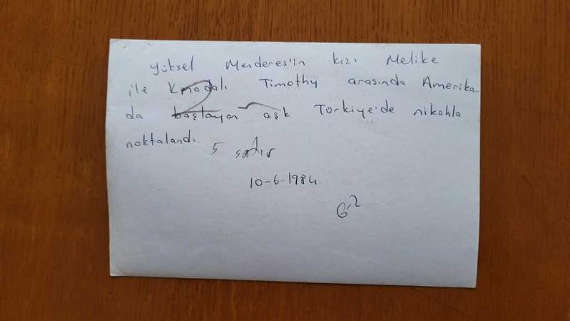ADNAN MENDERES'İN TORUNU MELİKE MENDERES'İN DÜĞÜNÜNÜN ORİJİNAL 2'Lİ AJANS BASIN FOTOĞRAFI SETİ - 18 x 12 cm EBADINDA - YÜKSEL MENDRES'İN KIZI MELİKE MENDERES'İN KANADALI TIMOTHY İLE OLAN DÜĞÜNÜNDE ÇEKİLMİŞ 2 FARKLI KARE. CELAL BAYAR DA DAVETLİLER ARASINDA YER ALMAKTADIR. 10 HAZİRAN 1984, en son 3 ay önce güncellenmiştir.