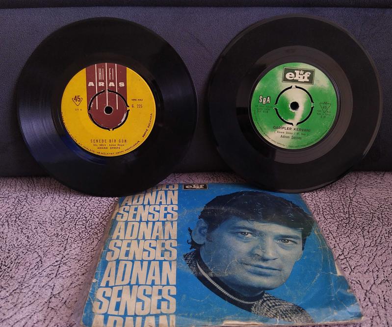 ADNAN ŞENSES İKİ PLAK BİRDEN. 1- GARİPLER KERVANI, 2-SENEDE BİR GÜN. KONDİSYON YÜKSEK KOLEKSİYONLUK