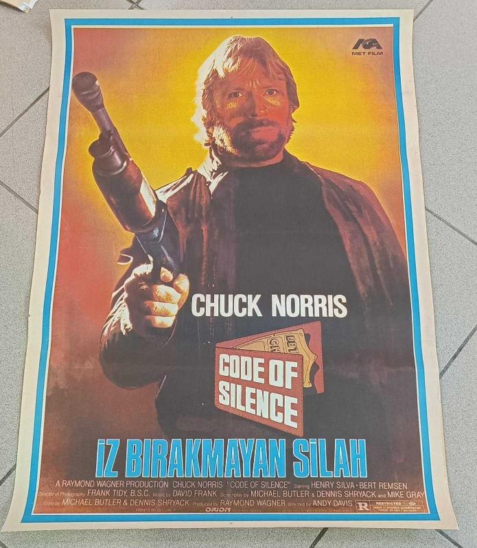 AFİŞ * İZ BIRAKMAYAN SİLAH (CODE OF SILENCE) * CHUCK NORRIS * ORİJİNAL FİLM AFİŞİ * 65x95 CM, 3 ay önce satışa sunulmuştur.