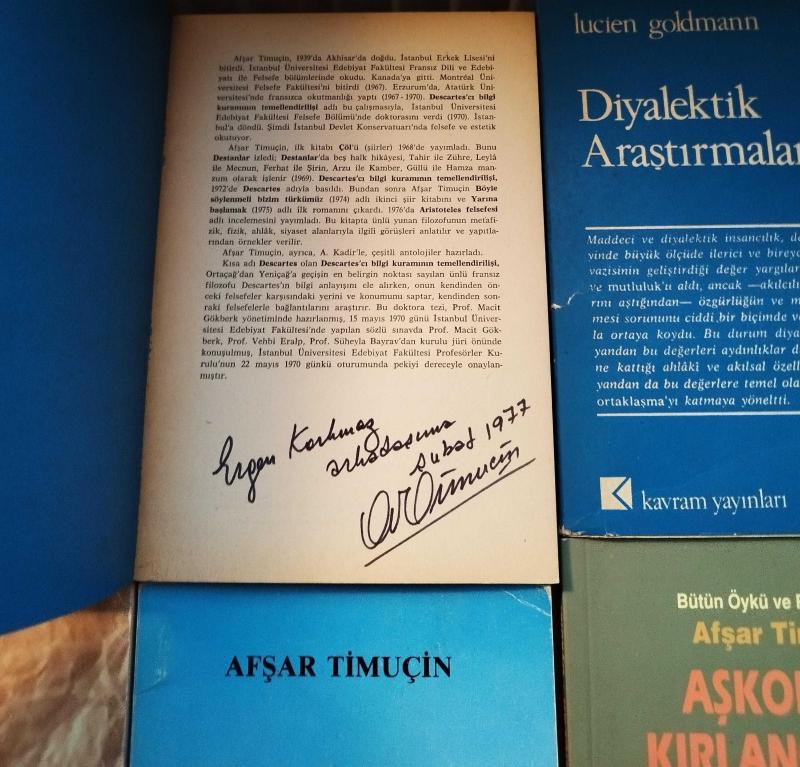 AFŞAR TİMUÇİN 6 KİTAP İMZALI (GERÇEKÇİ DÜŞÜNCENİN KAYNAKLARI - FELSEFE BİR SEVİNÇTİR - GERÇEKÇİ DÜŞÜNCE GERÇEKÇİ SANAT - DESCARTES - DİYALEKTİK ARAŞT adlı eser, Kitap > Sosyal Bilimler > Felsefe > Batı Felsefesi kategorisinde İkinci El olarak satıştadır.