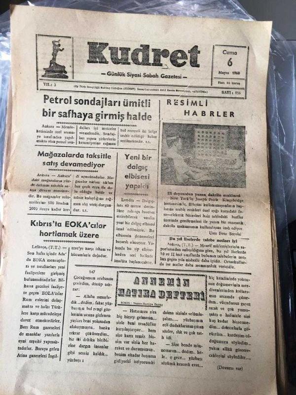 AFYON KUDRET GÜNLÜK SİYASİ GAZETESİ -YEREL TAŞRA BASINI - 6 MAYIS 1960- YIL :3 SAYI :856-Petrol sondajları ümitli bir safhaya girmiş halde -Mağazalarda taksitle satış devam ediyor -Kıbrıs ' ta EOKA ''cılar hortlamak üzere -Yeni bir dalgıç elbisesi yapıldı -Resimli haberler -Annemin Hatıra Defteri -Doktor Turgut Aktan Röntgen Ve Muayene - Yıpranma, sararmalar, kupon kesiği ve yırtılmalar zamana bağlı olarak görülebilir.