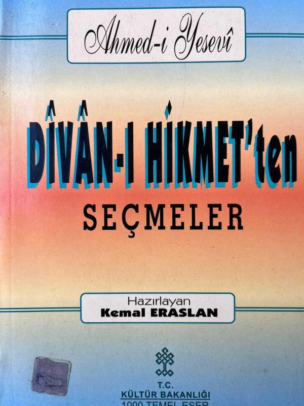 AHMEDİ - İ YESEVİ DİVAN - I HİKMET'TEN SEÇMELER, AHMED-İ YESEVİ tarafından kaleme alınmıştır. Eser KEMAL ERASLAN editörlüğünde hazırlanmıştır. Kitap 2000 yılında T.C KÜLTÜR BAKANLIĞI tarafından [ANKARA] yayınlanmıştır. 524 sayfadır. AHMEDİ - İ YESEVİ DİVAN - I HİKMET'TEN SEÇMELER adlı eser Türkçe dilindedir. Eserin içeriğinde Osmanlıca dilinde bölümlere de yer verilmektedir.
