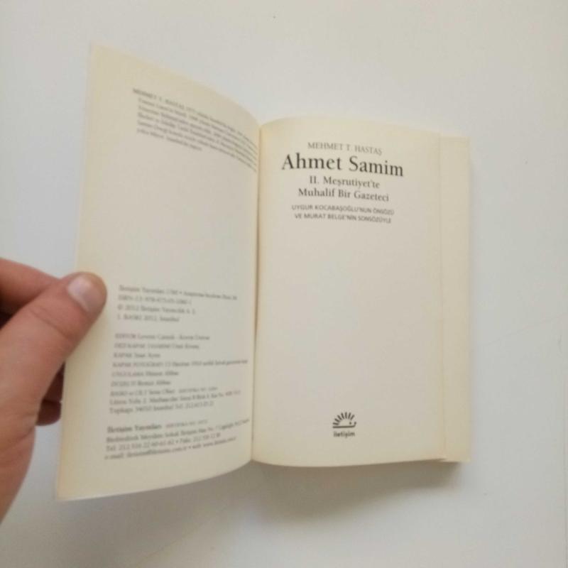 AHMET SAMİM II. MEŞRUTİYET'TE MUHALİF BİR GAZETECİ (2. EL), MEHMET T. HASTAŞ tarafından kaleme alınmıştır. Kitap 2012 yılında İLETİŞİM YAYINLARI tarafından [İSTANBUL] 978-975-05-1060-1 ISBN kodu ile yayınlanmıştır. Satışta olan kitap, yayınevinin 1. baskısıdır. 256 sayfadır. Sayfa bilgisi 2. HAMUR olarak belirtilmiştir. AHMET SAMİM II. MEŞRUTİYET'TE MUHALİF BİR GAZETECİ (2. EL) adlı eser Türkçe dilindedir.
