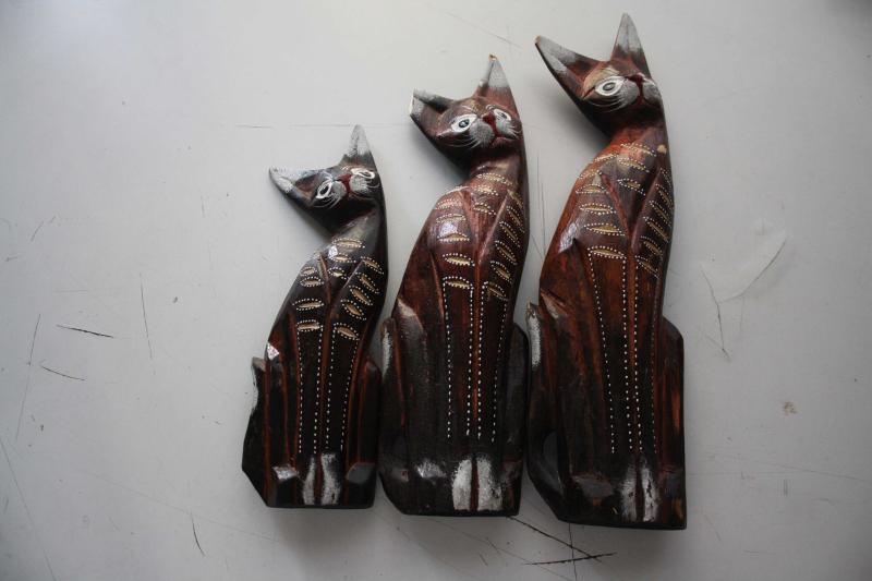 AHŞAP EL YONTMASI 3 LÜ KEDİ (ANTİK KOLİ 22 başlıklı antika/koleksiyon objesi Asya menşe’lidir. 2000 ve sonrası dönemine aittir.