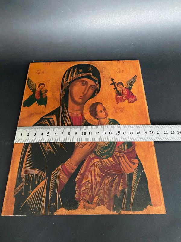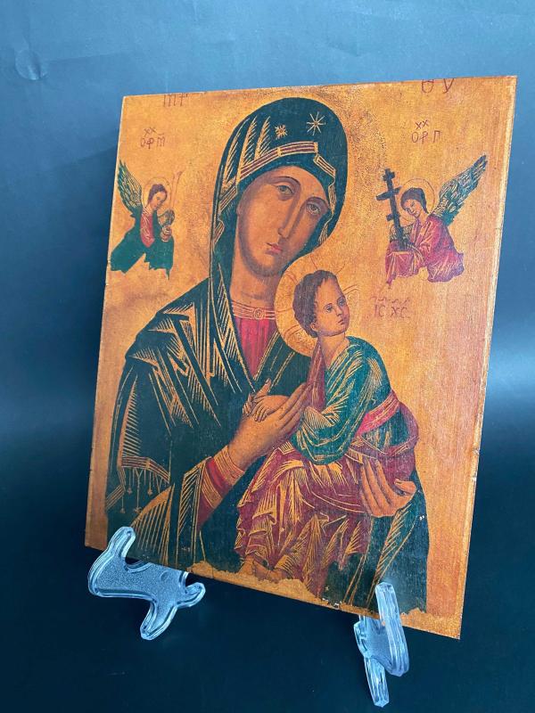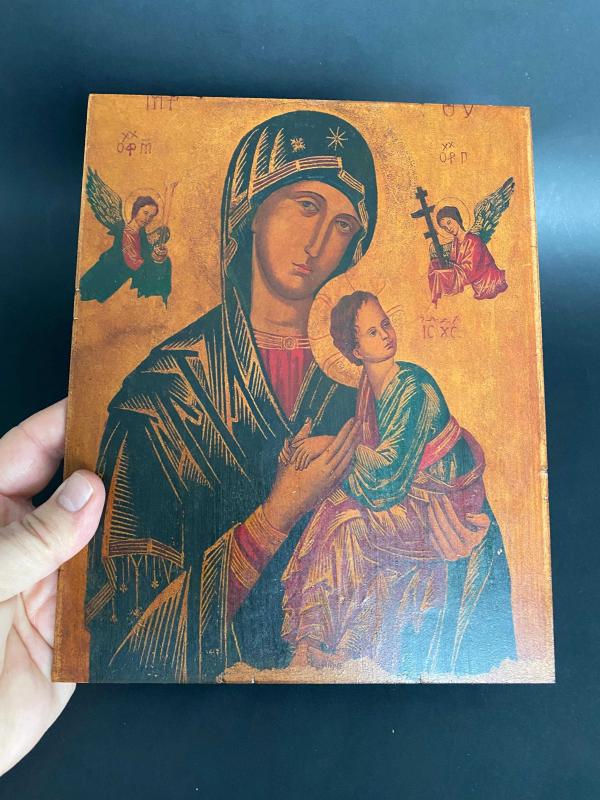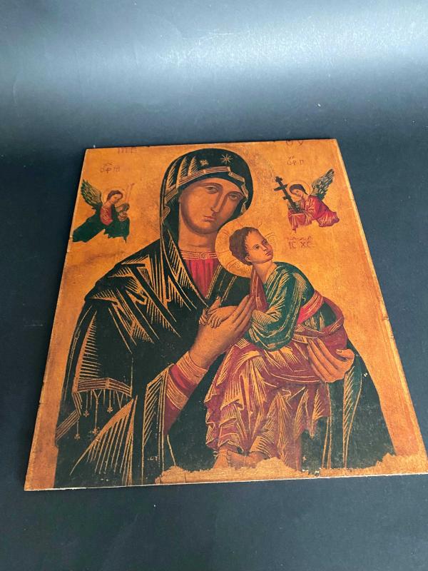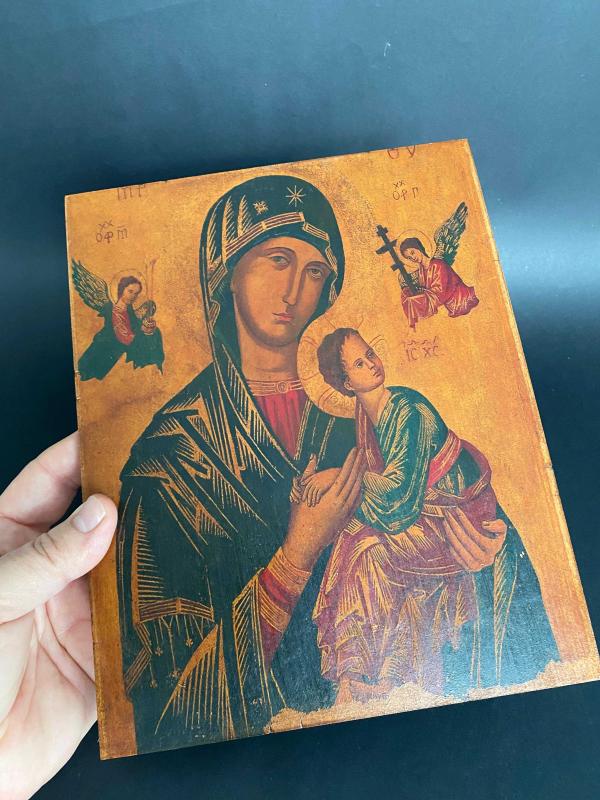 Avrupa’daki bir kilise ya da evden çıkma eski bir ahşap ikona. Yurtdışından bize ulaştı. Üstü cilalı bir eser. . Bu ikonografik çalışma, Hristiyan sanatında çok ünlü olan "Kardiyotissa" (Yürekten Seven/Şefkatli) veya yaygın adıyla "Our Lady of Perpetual Help" (Daimi Yardım Meryem Ana) tasviri olarak biliniyor. * Ebat: 25 x 20 cm. #ikona #meryem #isa #hristiyan #haç #resim