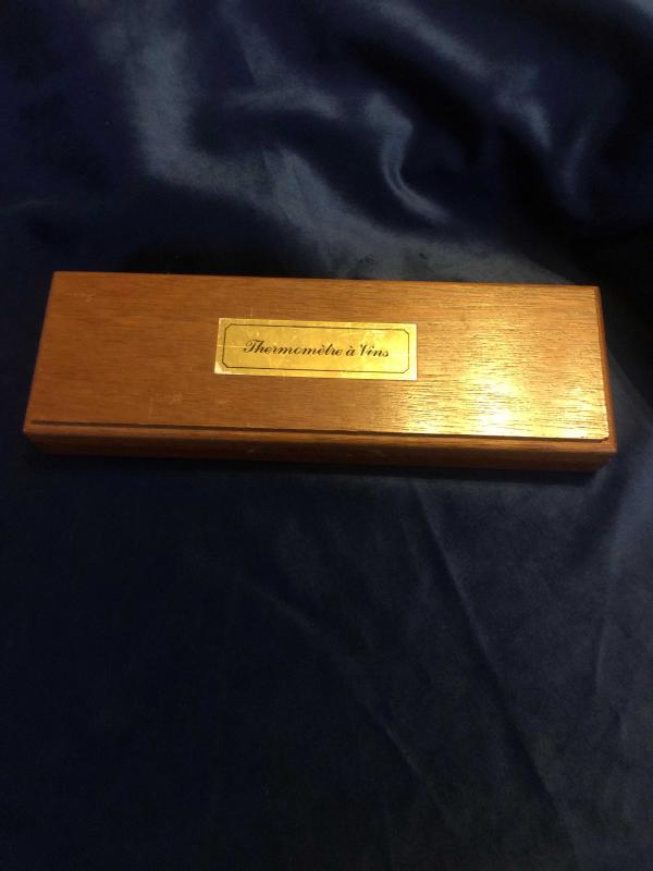 Orijinal Ahşap kutusunda Vintage Fransız Şarap ve Şampanya termometresi