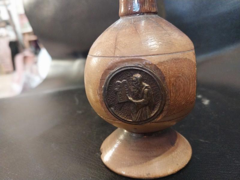 AHŞAP MUMLUK, ŞAMDAN, MUSEVİ YAHUDİ SEMBOLLER İLE SÜSLENMİŞ AHŞAP MUMLUK. başlıklı antika/koleksiyon objesi Avrupa menşe’lidir. 1960-1979 arası dönemine aittir.