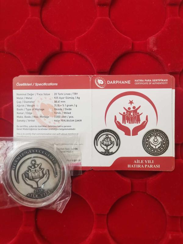 Aile yılı OKSİDE GÜMÜŞ hatıra parası. Sertifikalı, Çil.