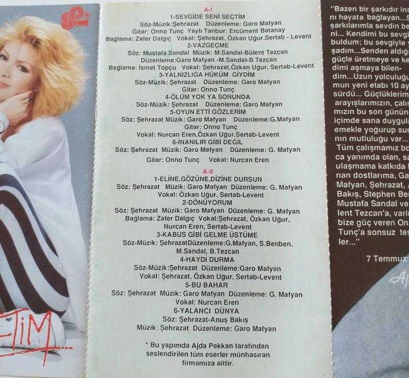 AJDA PEKKAN 1991 SENİ SEÇTİM Kaset .27, bir ay önce satışa sunulmuştur.