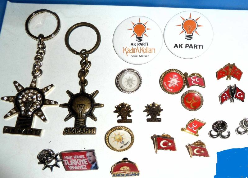 AK PARTİ ANAHTARLIK ROZET+ TÜRK BAYRAĞI VE MHP ROZET LOTU 20 ÇEŞİT başlıklı antika/koleksiyon objesinin menşei belirtilmemiştir. Objenin ait olduğu dönem bilinmeketedir.