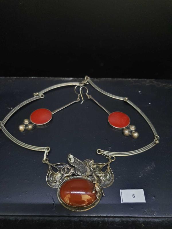 AKİK TAŞLI GÜMÜŞ KOLYE VE KÜPE başlıklı antika/koleksiyon objesi Türkiye menşe’lidir. 1980-1999 arası dönemine aittir.