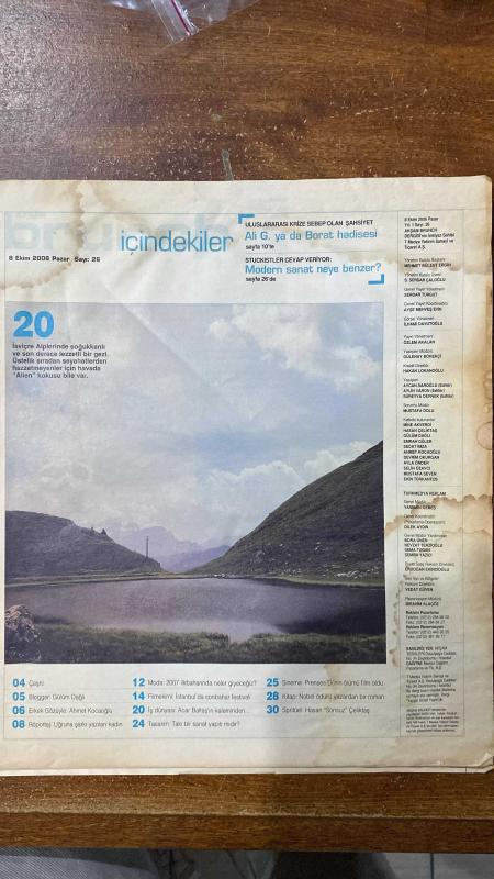 AKŞAM BRUNCH DERGİSİ - SAYI : 26 - 8 EKİM 2006 -LEONARD COHEN - LIAN LUNSON - BORAT - AYŞE ŞULE BİLGİÇ - KIRAÇ - NICOLE KIDMAN - AYLA ÖNDER - TIMURTAŞ ONAN - ACAR BALTAŞ - PRINSES DIANA I’M YOUR MAN - FİLMEKİMİ - 2007 İLKBAHAR-YAZ MODASI - BİR TIK’LA ÇİL ÇİL ALTIN - RAMAZAN BİTMEDEN - OSTEOPOROZ KORSESİ - TERLETMİYOR SICAK TUTUYOR - KIŞ MI GELDİ - İSTANBUL MERCEK ALTINDA - TRENÇKOTUNUZ YOKSA - GEHWOL FUSSKRAFT MAVİ KREM - ULUSLARARASI KRİZE SEBEP OLAN ŞAHSİYET - STUCKISTLER CEVAP VERİYOR - HIZ TUTKUNU KÖYLÜ KIZI - İSTANBUL BAMBAŞKA BİR GEZEGEN- MICHAEL DICKINSON - TAYYİP ERDOĞAN - GEORGE BUSH - ERHAN KARA - TRACY EMIN - BILLY CHILDISH - SARAH LUCAS - GARY HUME - DAMIEN HIRST - MINE AKVERDİ 2007 YAZ MODASI - MODERN SANAT KIRMIZI - STUCKISM - TUVAL VE BOYALAR GERİ DÖNSÜN - 30 SAYFA, SELAHATTİN DUMAN tarafından kaleme alınmıştır. Eser HANDE ÖZCAN editörlüğünde hazırlanmıştır. Kitap DOĞAN OFSET tarafından [İSTANBUL ] yayınlanmıştır. 30 sayfadır. AKŞAM BRUNCH DERGİSİ - SAYI : 26 - 8 EKİM 2006 -LEONARD COHEN - LIAN LUNSON - BORAT - AYŞE ŞULE BİLGİÇ - KIRAÇ - NICOLE KIDMAN - AYLA ÖNDER - TIMURTAŞ ONAN - ACAR BALTAŞ - PRINSES DIANA I’M YOUR MAN - FİLMEKİMİ - 2007 İLKBAHAR-YAZ MODASI - BİR TIK’LA ÇİL ÇİL ALTIN - RAMAZAN BİTMEDEN - OSTEOPOROZ KORSESİ - TERLETMİYOR SICAK TUTUYOR - KIŞ MI GELDİ - İSTANBUL MERCEK ALTINDA - TRENÇKOTUNUZ YOKSA - GEHWOL FUSSKRAFT MAVİ KREM - ULUSLARARASI KRİZE SEBEP OLAN ŞAHSİYET - STUCKISTLER CEVAP VERİYOR - HIZ TUTKUNU KÖYLÜ KIZI - İSTANBUL BAMBAŞKA BİR GEZEGEN- MICHAEL DICKINSON - TAYYİP ERDOĞAN - GEORGE BUSH - ERHAN KARA - TRACY EMIN - BILLY CHILDISH - SARAH LUCAS - GARY HUME - DAMIEN HIRST - MINE AKVERDİ 2007 YAZ MODASI - MODERN SANAT KIRMIZI - STUCKISM - TUVAL VE BOYALAR GERİ DÖNSÜN - 30 SAYFA adlı eser Türkçe dilindedir.