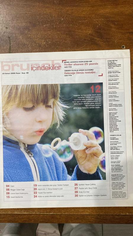 AKŞAM BRUNCH DERGİSİ - SAYI : 98 - 24 ŞUBAT 2008 - MICHAEL JACKSON - TUNCAY ÖZKAN - QUENTIN TARANTINO - AYSel GÜREL - KURT RUSSELL - GÜLÜM DAĞLI - SERDAR TURGUT - AYŞE MEHVEŞ EVİN - İLHAMİ DAVUTOĞLU - ÖZLEM AKALAN - GÜLENAY BÖREKÇİ - HAKAN LOKANOĞLU - AYCAN SAROĞLU - SÜREYYA DERNEK - MUSTAFA DOLU - MİNE AKVERDİ - ECE ARAR - HASAN ÇELİKTAŞ - ÖZLEM KÖYOĞLU - ERDOĞAN OĞULTEKİN - SELİN ÖZAVCI - BARIŞ ÖZKÖK - ÖZLEM ÖZTÜRK - BURAK SOYER - EYÜP TATLIPINAR - EKİN TÜRKANTOS - AHU UZ - YASEMİN GEBEŞ - DİLEK AYDIN - SEMA TUGAN - İNCİ GÜR YABEYLİ - ERDOĞAN EKİNCİOĞLU - VEDAT GÜVEN - İBRAHİM ALAGÖZ ZAMAN MAKİNESİ GERÇEK OLACAK MI? - GELECEĞE DÖNÜŞ NOSTALJİSİ - THRILLER 25 YAŞINDA - İNSANLAR VE HAYVANLAR NİÇİN OYUN OYNAR? - LOUVRE İSLAM KOLEKSİYONU - GAUDİ İSTANBUL’DA - TENEKE TRAMPET GRUBU - JAPON ESİRİN ÇİZDİĞİ 2. DÜNYA SAVAŞI - YASAKLI RUS RESİMLERİ - KÜLTÜR VE SANATI İNTERNETTEN TAKİP ET - SPİRİTÜEL: HASAN ÇELİKTAŞ - POPÜLER TARİH: BARIŞ ÖZKÖK - İLİŞKİLER VE ÇELİŞKİLER: ERDOĞAN OĞULT- 30 SAYFA, SELAHATTİN DUMAN tarafından kaleme alınmıştır. Eser HANDE ÖZCAN editörlüğünde hazırlanmıştır. Kitap DOĞAN OFSET tarafından [İSTANBUL ] yayınlanmıştır. 30 sayfadır. AKŞAM BRUNCH DERGİSİ - SAYI : 98 - 24 ŞUBAT 2008 - MICHAEL JACKSON - TUNCAY ÖZKAN - QUENTIN TARANTINO - AYSel GÜREL - KURT RUSSELL - GÜLÜM DAĞLI - SERDAR TURGUT - AYŞE MEHVEŞ EVİN - İLHAMİ DAVUTOĞLU - ÖZLEM AKALAN - GÜLENAY BÖREKÇİ - HAKAN LOKANOĞLU - AYCAN SAROĞLU - SÜREYYA DERNEK - MUSTAFA DOLU - MİNE AKVERDİ - ECE ARAR - HASAN ÇELİKTAŞ - ÖZLEM KÖYOĞLU - ERDOĞAN OĞULTEKİN - SELİN ÖZAVCI - BARIŞ ÖZKÖK - ÖZLEM ÖZTÜRK - BURAK SOYER - EYÜP TATLIPINAR - EKİN TÜRKANTOS - AHU UZ - YASEMİN GEBEŞ - DİLEK AYDIN - SEMA TUGAN - İNCİ GÜR YABEYLİ - ERDOĞAN EKİNCİOĞLU - VEDAT GÜVEN - İBRAHİM ALAGÖZ ZAMAN MAKİNESİ GERÇEK OLACAK MI? - GELECEĞE DÖNÜŞ NOSTALJİSİ - THRILLER 25 YAŞINDA - İNSANLAR VE HAYVANLAR NİÇİN OYUN OYNAR? - LOUVRE İSLAM KOLEKSİYONU - GAUDİ İSTANBUL’DA - TENEKE TRAMPET GRUBU - JAPON ESİRİN ÇİZDİĞİ 2. DÜNYA SAVAŞI - YASAKLI RUS RESİMLERİ - KÜLTÜR VE SANATI İNTERNETTEN TAKİP ET - SPİRİTÜEL: HASAN ÇELİKTAŞ - POPÜLER TARİH: BARIŞ ÖZKÖK - İLİŞKİLER VE ÇELİŞKİLER: ERDOĞAN OĞULT- 30 SAYFA adlı eser Türkçe dilindedir.