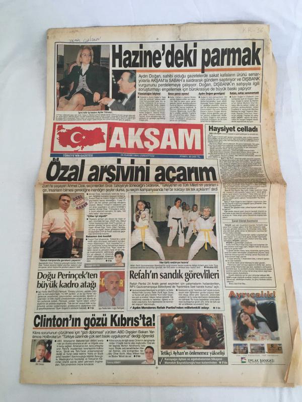 AKŞAM GAZATESİ,25 KASIM 1995,HAZİNEDEKİ PARMAK ,AYDIN DOĞAN,AYFER YILMAZ,AHMET ÖZAL,DOĞU PERİNÇEK,CLİNTON,KUBİLAY,GALATASARAY,ALİ ŞEN FENERBAHÇE ,BEŞİKTAŞ,AUMANN,OĞUZ ÇETİN,ERTUĞRUL adlı eser, Kitap > Süreli Yayınlar > Gazeteler kategorisinde İkinci El olarak satıştadır.