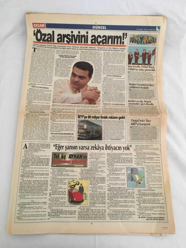 AKŞAM GAZATESİ,25 KASIM 1995,HAZİNEDEKİ PARMAK ,AYDIN DOĞAN,AYFER YILMAZ,AHMET ÖZAL,DOĞU PERİNÇEK,CLİNTON,KUBİLAY,GALATASARAY,ALİ ŞEN FENERBAHÇE ,BEŞİKTAŞ,AUMANN,OĞUZ ÇETİN,ERTUĞRUL adlı eser Türkçe dilindedir.