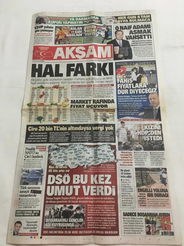 AKŞAM GAZETESİ,17 EYLÜL 2021,HAL FARKI,MENDERES,ERDOĞAN,FAHİŞ FİYATLARA DUR DİYECEĞİZ,DSÖ,PASİFİK NATO ,CİN,HDP,AVRUPA FATİHİ G.SARAY,FATİH TERİM,ALMANYA,MESUT,F.BAHÇE, adlı eser Türkçe dilindedir.