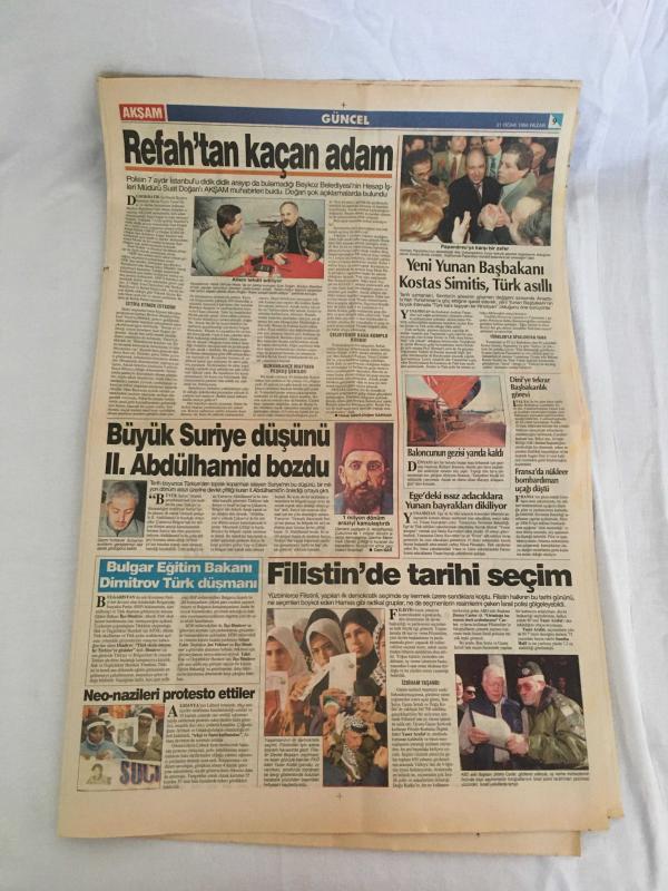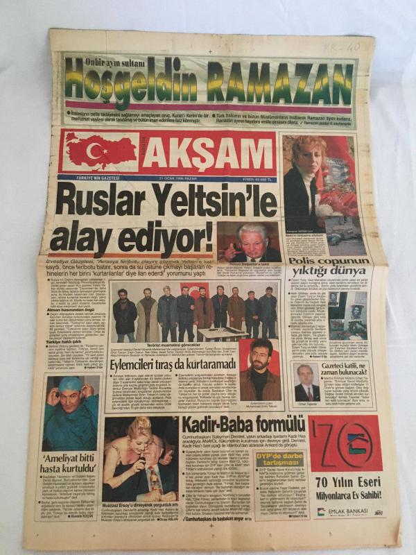 AKŞAM GAZETESİ,21 OCAK 1996,RUSLAR YELTSİNLE ALAY EDİYORDENİZ BAYKAL,ORHAN TAŞANLAR,SİNAN ERDEM,YALMAN,G SARAY,FENER,BOLİÇ,TRABZON,DAUM adlı eser Türkçe dilindedir.