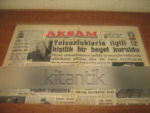 AKŞAM GAZETESİ / 3 HAZİARAN 1960 / YOLSUZLARLA İLGİLİ 12 KİŞİLİK BİR HEYET KURULDU 6 SAYFA