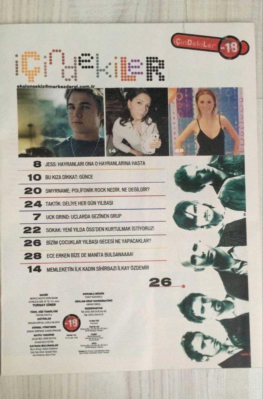 AKTÜEL -18 YETİŞKİNLERE YASAK DERGİ - SAYI 35 - 21-27 ARALIK 2006 - JESS: HAYRANLARIMIN HASTASIYIM - BU KIZA DİKKAT: GÜNCE - SMYRNAME: POLİFONİK ROCK NEDİR, NE DEĞİLDİR? - TAKTİK: DELİYE HER GÜN YILBAŞI - UCK GRIND: UÇLARDA GEZİNEN GRUP - YENİ YILDA ÖSS’DEN KURTULMAK İSTİYORUZ - BİZİM ÇOCUKLAR YILBAŞI GECESİ NE YAPACAKLAR? - ECE ERKEN: BİZE DE MANİTA BULSANAAA! - MEMLEKETİN İLK KADIN SİHİRBAZI: İLKAY ÖZDEMİR - MUSE WEMBLEY’DE SAHNEDE - ÖZLEM TEKİN’E GENÇ SEVGİLİ - DORIAN’DAN HEM KLİP HEM KONSER - SÜRPRİZLİ TİYATRO: ÖP BABANIN ELİNİ - 2006’DA EN ÇOK BRITNEY TIKLANDI - UCK GRIND: AŞK ŞARKISI BEKLEMEYİN, ÖFKE VAR! - JESS - GÜNCE - ANDREAS WILDERMANN - DİLEK AKBAŞ - ERTAN - GÖKHAN AKÇAY - SEVARA NAZARKHAN - JOAQUIN CORTES - HARUN KOLÇAK - EMRE AYDIN - HEPSİ - BULUTSUZLUK ÖZLEMİ - REDD - AYDİLGE - BADEM - GRİPİN - MANGA - ECE ERKEN - İLKAY ÖZDEMİR - MUSE - ÖZLEM TEKİN - DORIAN - GÖNÜL ÜLKÜ - GAZANFER ÖZCAN - BRITNEY SPEARS - SHAKIRA - JESSICA SIMPSON - TANJU (UCK GRIND) - - 31 SAYFA, Ercan Arıklı tarafından kaleme alınmıştır. Eser Önay Bilgin editörlüğünde hazırlanmıştır. Kitap 1 Numara Hearst Yayıncılık tarafından yayınlanmıştır. 32 sayfadır. AKTÜEL -18 YETİŞKİNLERE YASAK DERGİ - SAYI 35 - 21-27 ARALIK 2006 - JESS: HAYRANLARIMIN HASTASIYIM - BU KIZA DİKKAT: GÜNCE - SMYRNAME: POLİFONİK ROCK NEDİR, NE DEĞİLDİR? - TAKTİK: DELİYE HER GÜN YILBAŞI - UCK GRIND: UÇLARDA GEZİNEN GRUP - YENİ YILDA ÖSS’DEN KURTULMAK İSTİYORUZ - BİZİM ÇOCUKLAR YILBAŞI GECESİ NE YAPACAKLAR? - ECE ERKEN: BİZE DE MANİTA BULSANAAA! - MEMLEKETİN İLK KADIN SİHİRBAZI: İLKAY ÖZDEMİR - MUSE WEMBLEY’DE SAHNEDE - ÖZLEM TEKİN’E GENÇ SEVGİLİ - DORIAN’DAN HEM KLİP HEM KONSER - SÜRPRİZLİ TİYATRO: ÖP BABANIN ELİNİ - 2006’DA EN ÇOK BRITNEY TIKLANDI - UCK GRIND: AŞK ŞARKISI BEKLEMEYİN, ÖFKE VAR! - JESS - GÜNCE - ANDREAS WILDERMANN - DİLEK AKBAŞ - ERTAN - GÖKHAN AKÇAY - SEVARA NAZARKHAN - JOAQUIN CORTES - HARUN KOLÇAK - EMRE AYDIN - HEPSİ - BULUTSUZLUK ÖZLEMİ - REDD - AYDİLGE - BADEM - GRİPİN - MANGA - ECE ERKEN - İLKAY ÖZDEMİR - MUSE - ÖZLEM TEKİN - DORIAN - GÖNÜL ÜLKÜ - GAZANFER ÖZCAN - BRITNEY SPEARS - SHAKIRA - JESSICA SIMPSON - TANJU (UCK GRIND) - - 31 SAYFA adlı eser Türkçe dilindedir.
