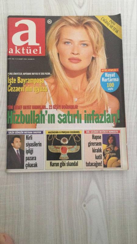 AKTÜEL HAFTALIK HABER DERGİSİ - SAYI:192 - 9-15 MART - 1995 - BAYRAMPAŞA CEZAEVİ’NİN İÇYÜZÜ: SİLAH, EROİN, CEP TELEFONU – HİZBULLAH’IN SATIRLI İNFAZLARI: HEDEFTE HAYAT KADINLARI – İDİL ÇELİKER: “HAPSE GİRERSEM KİRALIK KATİL ÇIKACAK” – SALİH GÜNGÖR’DEN MEDYAYA MEYDAN OKUMA – KARUN HAZİNESİ: 8 PARÇA EKSİK – GÜNAH KRALİÇELERİ: MADONNA MI, HÜLYA AVŞAR MI? – KOMUTANIN YEĞENİ DE MIKES’TE – JODIE FOSTER’IN OSCAR KOLEKSİYONU – ÇİLLER’İ DÜŞÜRME PLANI: MUHALİF BAKANLAR HAZIRDA BEKLİYOR – “ESARETİN BEDELİ” VE “IMMORTAL BELOVED” VİZYONDA – KİTAP KURTLARI DOSYASI – 7. ANKARA FİLM FESTİVALİ BAŞLIYOR – OKAN BAYÜLGEN: “ÇENEM DEĞİL, KAFAM ÇALIŞIYOR” – GAZETELERİN SON GÖZDELERİ: YARIM SAYFALIK KÖŞE YAZARLARI – 2000’İN REKLAMI HAZIR – ÇİĞDEM TUNÇ: “YAZ GELİNİ” – STADYUM YERİNE BARDA MAÇ KEYFİ – YÜZMEYİN, KÜREK ÇEKİN – JOHN KACERE: EROTİK KADIN RESSAMI İSTANBUL’DA – İDİL ÇELİKER – SALİH GÜNGÖR – CEYHAN MUMCU – AHMET TAN – MAHİR KAYNAK – CAN DÜNDAR – GANI MÜJDE – ÇİĞDEM TUNÇ – HALKİ MENGÜ – 146 SAYFA adlı eser, Kitap > Süreli Yayınlar > Dergiler > Siyaset kategorisinde İkinci El olarak satıştadır.