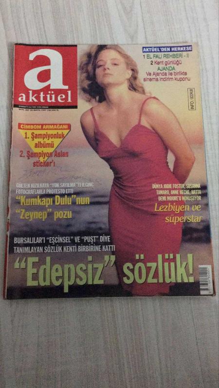 AKTÜEL HAFTALIK HABER DERGİSİ - SAYI:307 - 28 MAYIS 1997 - KUMKAPI DULU FOTOĞRAF PROTESTOSU – LEZBİYEN VE SÜPERSTAR TARTIŞMASI – EDEPSİZ SÖZLÜK KRİZİ – YAPISAL DÖNÜŞÜMÜN EŞİĞİNDE TÜRKİYE – SİYASİ SENARYO ANALİZİ – PATLAK PREZERVATİF SKANDALI – ÜÇÜZ DOĞUM MUCİZESİ – SİGARA İÇENE KIZ YOK KAMPANYASI – MÜCEVHER HIRSIZLIĞI SUÇLAMASI – KEDİYE ESTETİK AMELİYAT – TUVALET DUVARLARINDAN SANAL GRAFFİTİYE – YASSI HOPARLÖR TEKNOLOJİSİ – BİLGİSAYARLARIN KONUŞMA YARIŞMASI – SİGARAYI BIRAKMA TESTİ VE ÖNERİLER - GÜLTEN KIZILKAYA – JODIE FOSTER – SUSANNA TAMARO – ANNE HECHE – DEMI MOORE – MAHİR KAYNAK – AHMET ERDOĞAN – FARAH FAWCETT – KRISTIN AMBER – JAMES ORR – MURAT OĞUL – PAULO ROBINSON – GARY KASPAROV – GILBERT LAGRUE - 144 SAYFA, Ercan Arıklı tarafından kaleme alınmıştır. Eser Önay Bilgin editörlüğünde hazırlanmıştır. AKTÜEL HAFTALIK HABER DERGİSİ - SAYI:307 - 28 MAYIS 1997 - KUMKAPI DULU FOTOĞRAF PROTESTOSU – LEZBİYEN VE SÜPERSTAR TARTIŞMASI – EDEPSİZ SÖZLÜK KRİZİ – YAPISAL DÖNÜŞÜMÜN EŞİĞİNDE TÜRKİYE – SİYASİ SENARYO ANALİZİ – PATLAK PREZERVATİF SKANDALI – ÜÇÜZ DOĞUM MUCİZESİ – SİGARA İÇENE KIZ YOK KAMPANYASI – MÜCEVHER HIRSIZLIĞI SUÇLAMASI – KEDİYE ESTETİK AMELİYAT – TUVALET DUVARLARINDAN SANAL GRAFFİTİYE – YASSI HOPARLÖR TEKNOLOJİSİ – BİLGİSAYARLARIN KONUŞMA YARIŞMASI – SİGARAYI BIRAKMA TESTİ VE ÖNERİLER - GÜLTEN KIZILKAYA – JODIE FOSTER – SUSANNA TAMARO – ANNE HECHE – DEMI MOORE – MAHİR KAYNAK – AHMET ERDOĞAN – FARAH FAWCETT – KRISTIN AMBER – JAMES ORR – MURAT OĞUL – PAULO ROBINSON – GARY KASPAROV – GILBERT LAGRUE - 144 SAYFA adlı eser Türkçe dilindedir.