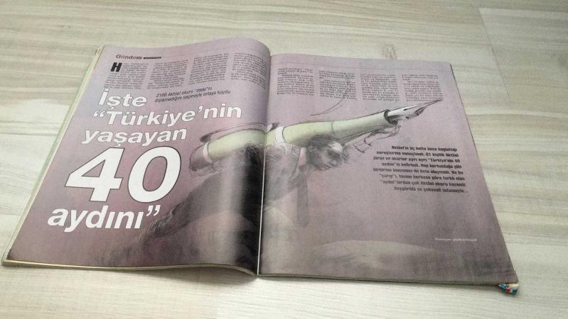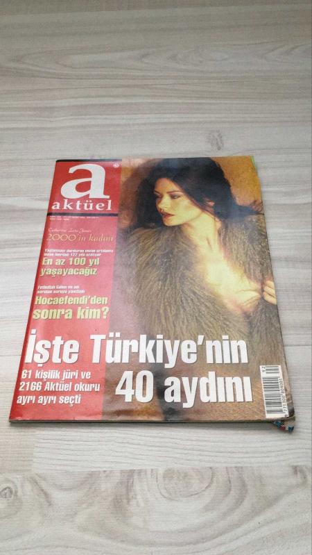 AKTÜEL HAFTALIK HABER DERGİSİ - SAYI392 - 21-27 OCAK 1999 -Hamdi Alkan-TÜRKİYE’NİN 40 AYDINI” – İSHAK ALATON’UN DEMOKRATİKLEŞMEDEKİ ROLÜ – NILÜFER GÖLE’NİN “MODERN MAHREM” VE MAHREMİYET TARTIŞMALARI – AKIN BİRDAL’IN İNSAN HAKLARI DERNEĞİ BAŞKANLIĞI – ZÜLFÜ LİVANELİ’NİN “NEW AGE RHAPSODY” ALBÜMÜ VE SENFONİK DÜZENLEMELERİ – FRANCIS SHAW VE ARİF MARDİN’İN LIVANELİ ALBÜMÜNE YORUMLARI – FETHULLAH GÜLEN’İN “HOCADAN SONRA KİM?” SORUSUNA YANITI – GENÇLİK GENİ ÜZERİNE YAPILAN ARAŞTIRMALARLA ORTALAMA İNSAN ÖMRÜNÜN 122 YILA UZAYABİLECEĞİ İDDİASI – YAŞLANMAYI GECİKTİRMEK İÇİN 7 BİLİMSEL ÖNERİ – HARVARD ÜNİVERSİTESİ’NDEN EGZERSİZ VE UZUN YAŞAM ARASINDAKİ BAĞLANTI – CATHERINE ZETA-JONES’UN 2000’İN KADINI OLARAK YÜKSELİŞİ - ORHAN PAMUK – YAŞAR KEMAL – MİNE URGAN – EKREM AKURGAL – ENİS BATUR – İSMET ÖZEL – ATAOL BEHRAMOĞLU – METİN ERKSAN – GENCO ERKAL – ATIF YILMAZ – ATTİLA İLHAN – İLBER ORTAYLI – HALİL İNALCIK – ADALET AĞAOĞLU – MEHMET AYDIN – BÜLENT TANÖR 114 SAYFA, Ercan Arıklı tarafından kaleme alınmıştır. Eser Önay Bilgin editörlüğünde hazırlanmıştır. Kitap 1 Numara Hearst Yayıncılık tarafından yayınlanmıştır. 114 sayfadır. AKTÜEL HAFTALIK HABER DERGİSİ - SAYI392 - 21-27 OCAK 1999 -Hamdi Alkan-TÜRKİYE’NİN 40 AYDINI” – İSHAK ALATON’UN DEMOKRATİKLEŞMEDEKİ ROLÜ – NILÜFER GÖLE’NİN “MODERN MAHREM” VE MAHREMİYET TARTIŞMALARI – AKIN BİRDAL’IN İNSAN HAKLARI DERNEĞİ BAŞKANLIĞI – ZÜLFÜ LİVANELİ’NİN “NEW AGE RHAPSODY” ALBÜMÜ VE SENFONİK DÜZENLEMELERİ – FRANCIS SHAW VE ARİF MARDİN’İN LIVANELİ ALBÜMÜNE YORUMLARI – FETHULLAH GÜLEN’İN “HOCADAN SONRA KİM?” SORUSUNA YANITI – GENÇLİK GENİ ÜZERİNE YAPILAN ARAŞTIRMALARLA ORTALAMA İNSAN ÖMRÜNÜN 122 YILA UZAYABİLECEĞİ İDDİASI – YAŞLANMAYI GECİKTİRMEK İÇİN 7 BİLİMSEL ÖNERİ – HARVARD ÜNİVERSİTESİ’NDEN EGZERSİZ VE UZUN YAŞAM ARASINDAKİ BAĞLANTI – CATHERINE ZETA-JONES’UN 2000’İN KADINI OLARAK YÜKSELİŞİ - ORHAN PAMUK – YAŞAR KEMAL – MİNE URGAN – EKREM AKURGAL – ENİS BATUR – İSMET ÖZEL – ATAOL BEHRAMOĞLU – METİN ERKSAN – GENCO ERKAL – ATIF YILMAZ – ATTİLA İLHAN – İLBER ORTAYLI – HALİL İNALCIK – ADALET AĞAOĞLU – MEHMET AYDIN – BÜLENT TANÖR 114 SAYFA adlı eser Türkçe dilindedir.