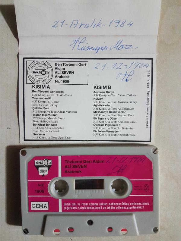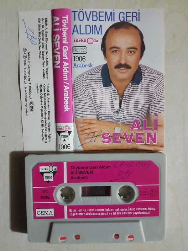 ALİ SEVEN 1906 TÖVBEMİ GERİ ALDIM TÜRKÜLA ALMAN BASKI başlıklı ürün, Efemera, Müzik, Sinema > Müzik, Plak, Kaset, CD > Müzik Kaseti > Yerli Müzik Kaseti kategorisi altında İkinci El olarak satılmaktadır.
