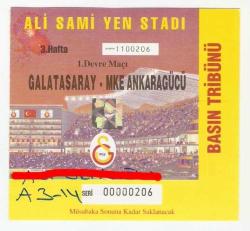** GALATASARAY - MKE ANKARAGÜCÜ ESKİ MAÇ BİLETİ ** 11 x 10.5 cm.ebadında,çok temiz durumda orijinal eski maç biletidir...