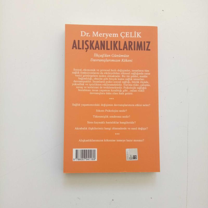 ALIŞKANLIKLARIMIZ / İLKÇAĞ'DAN GÜNÜMÜZE DAVRANIŞLARIMIZIN KÖKENİ (2. EL), DR. MERYEM ÇELİK tarafından kaleme alınmıştır. Eser İSMET GÜLSEÇGİN editörlüğünde hazırlanmıştır. Kitap 2019 yılında ASİ KİTAP tarafından [ İSTANBUL] 978-605-7941-16-9 ISBN kodu ile yayınlanmıştır. Satışta olan kitap, yayınevinin 1. baskısıdır. 260 sayfadır. Sayfa bilgisi 2. HAMUR olarak belirtilmiştir. ALIŞKANLIKLARIMIZ / İLKÇAĞ'DAN GÜNÜMÜZE DAVRANIŞLARIMIZIN KÖKENİ (2. EL) adlı eser Türkçe dilindedir.
