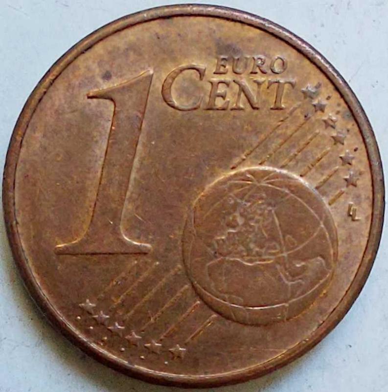 ALMANYA 1 Eurocent, 2005 bakır kaplı çelik ÇÇT Darphane işareti "F" Stuttgart FOTOĞRAFTAKİ PARA YOLLANACAKTIR. 3