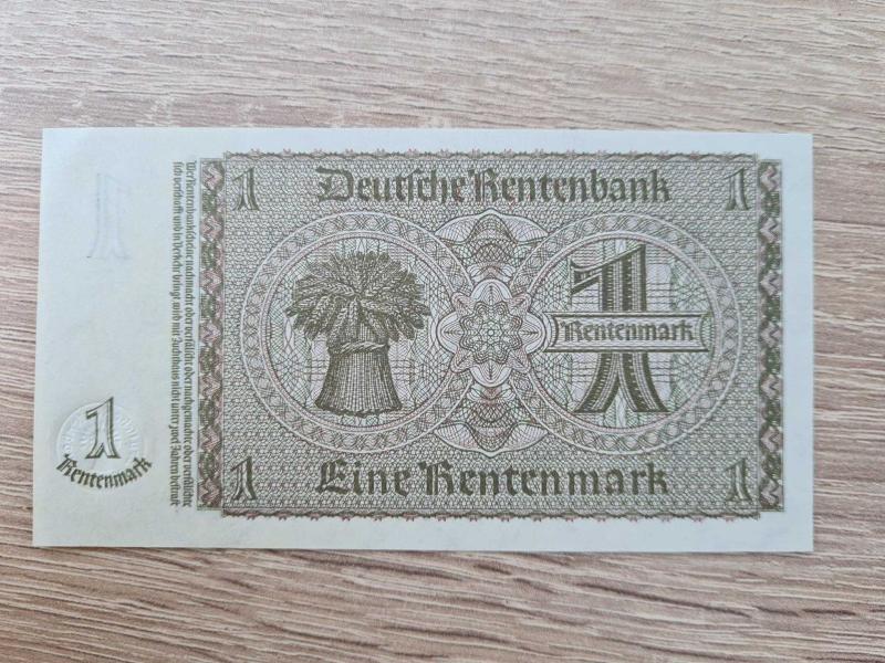 Parça: 1 Rentenmark (Eine Rentenmark) Banka: Deutsche Rentenbank, Berlin Tarih: 30 Januar 1937 (30 Ocak 1937 baskı tarihi kırmızı seri numaralı) Dönem: Nazi Almanyası / III. Reich dönemi, Weimar hiperenflasyonu sonrası istikrar parası Açıklama: Orijinal 1 Rentenmark banknotu. Üzerinde Deutsche Rentenbank ibaresi, kabartmalı (emboss) mühür ve kırmızı seri numarası net şekilde duruyor. Sarımsı zemin üzerinde siyah/mavi güvenlik lifleri kağıt içine gömülü halde görülebiliyor. Bu lifli kağıt ve kabartma mühür (Deutsche Rentenbank Berlin tipi dairesel mühür) dönem güvenlik özellikleridir. Ön yüzde gotik yazıyla “Eine Rentenmark” ibaresi, alt kısımda “Berlin, den 30. Januar 1937” tarihi; arka yüzde ortada buğday demeti (Renten: tarımsal teminat anlamına gelir) ve detaylı guilloche desenler mevcut. Kenarlar düzgün, köşeler keskin, renkler canlı. Kat izi, yırtık, bantlı onarım, kopma gibi ağır kusur yok. Koleksiyon için çok iyi görünümlü bir örnek (ÇİL’e yakın/aUNC civarı genel durum). Tarihsel önem: 1923 hiperenflasyonu sonrası Almanya’da para birimini dengelemek için çıkarılan Rentenmark, Reichsmark’a geçiş döneminin ana enstrümanıdır. Bu banknot, 1937 tarihli baskı olması nedeniyle direkt olarak Nazi Almanyası dönemine aittir ve II. Dünya Savaşı öncesi dönemi yansıtır. Hem ekonomik tarih hem de III. Reich dönemi koleksiyonu yapanlar için temel referans kupürlerden biridir. Durum (kondisyon): Yırtık yok Kat kırığı yok Köşe ezilmesi minimum Yazı/karalama yok Kabartma mühür ve seri numarası çok net