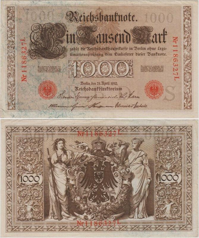 ALMANYA 1000 MARK 1910. ALMANYA İMPARATORLUĞU DEUTSCHE REICH. KAISER II. WILHELM DÖNEMİ. ÇİLALTI++, 17 gün önce satışa sunulmuştur.