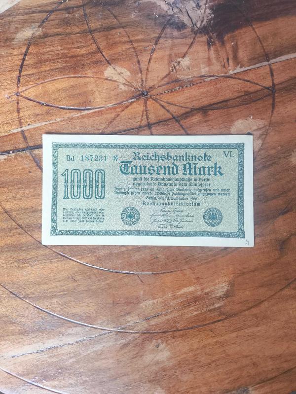 1922 tarihli Almanya 1000 mark, çil altı kondisyonda.