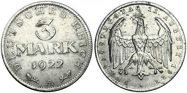 ALMANYA 1922 YILI 3 MARK, 18 gün önce satışa sunulmuştur.