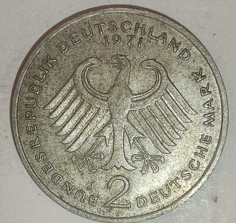 ALMANYA 1971 J 2 MARK Theodor Heuss. Federe Cumhuriyet 20. yıl dönümü (1949 - 1969), 6 ay önce satışa sunulmuştur.