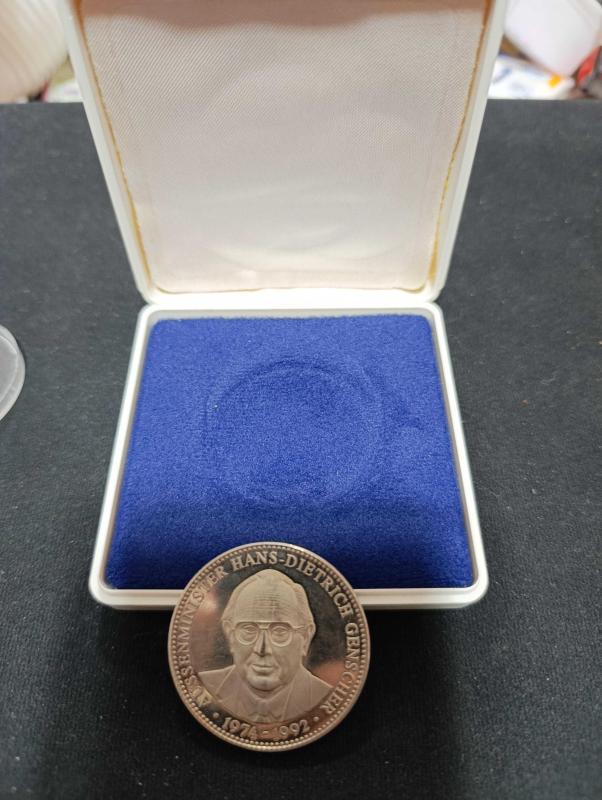 ALMANYA 1992 AUSSENMİNİSTER HANS DİETRİCH GENSCHER HATIRA MADALYON, dün satışa sunulmuştur.