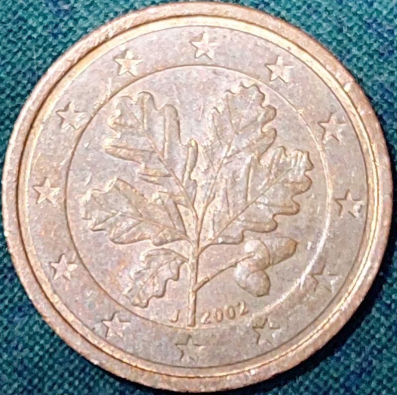 ALMANYA 2 Eurocent, 2002 bakır kaplı çelik ÇÇT+ "J" Hamburg FOTOĞRAFTAKİ PARA GÖNDERİLECEKTİR.. 1
