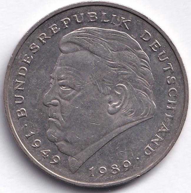ALMANYA 2 Mark, "Franz Josef Strauss, 40 yıl Almanya Federal Cumhuriyeti Hatıra Parası" 1990 ÇA "D" Münih FOTOĞRAFTAKİ PARA GÖNDERİLECEKTİR..