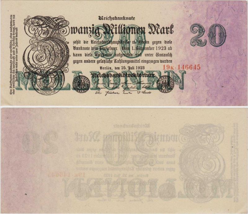 ALMANYA 20 MİLYON MARK 1923 WEİMAR CUMHURİYETİ DÖNEMİ. ÇİL(-), 2 ay önce satışa sunulmuştur.