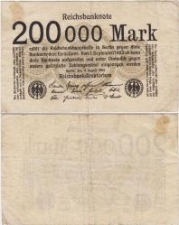ALMANYA 200.000 MARK 1923. WEİMAR CUMHURİYETİ HİPERENFLASYON DÖNEMİNDE 1923-25 KULLANILMIŞTIR. ÇOK TEMİZ KONDİSYON.