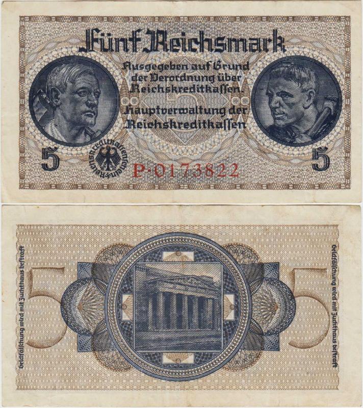 ALMANYA 5 MARK NAZİ İŞGAL TOPRAKLARI PARASI. 1939-44 ARASI KULLANILMIŞTIR. ÇÇT(-), en son bir ay önce güncellenmiştir.