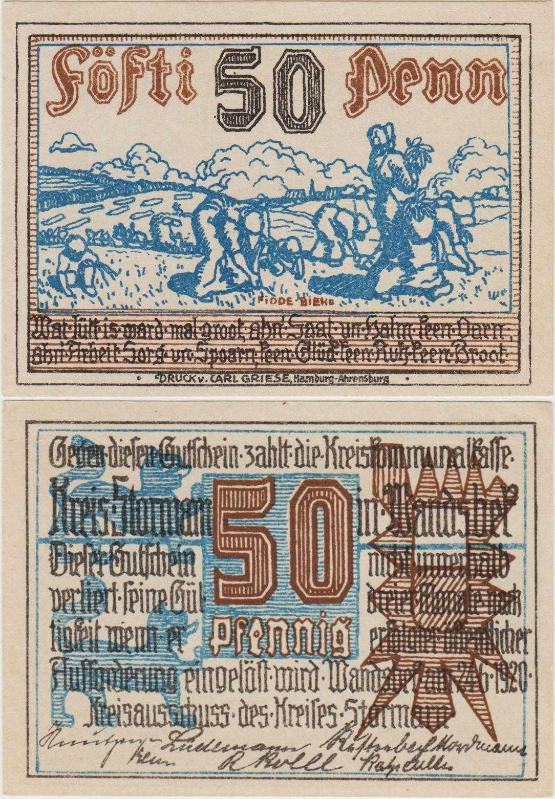 *** ALMANYA 50 PFENNİG 1920 NOTGELD-STORMARN. ÇİL, 11 gün önce satışa sunulmuştur.