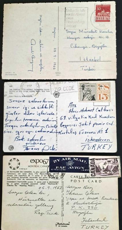 ALMANYA. AMERİKA VE CANADA KARIŞIK KART LOTU. POSTADAN GEÇMİŞ. TÜRKİYE YE GÖNDERİLMİŞ KAARTPOSTAL. 1960LAR...