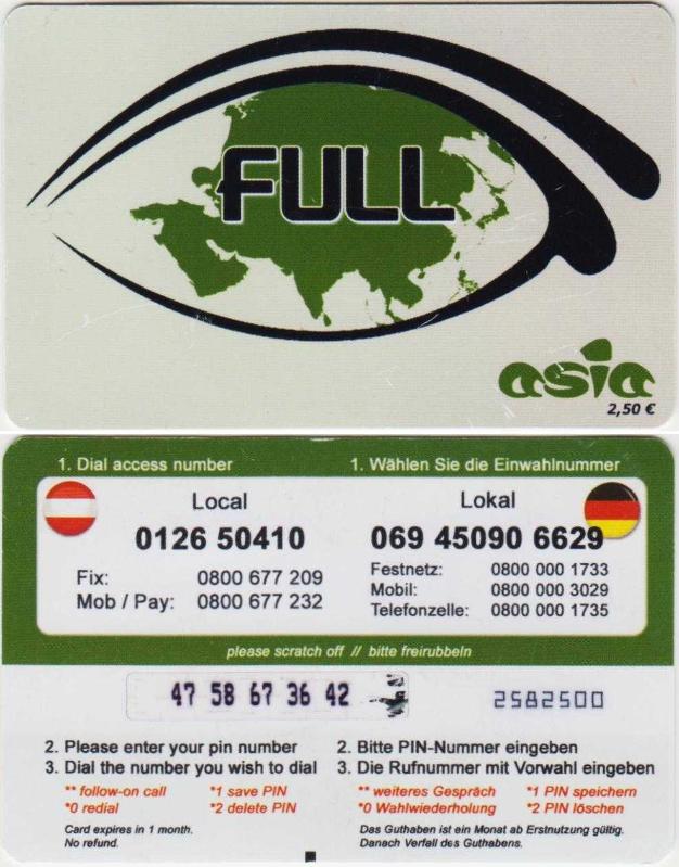 ALMANYA-AVUSTURYA FULL ASİA TELEFON KARTI. UFAK ÇİZİKLERİ VAR., en son dün güncellenmiştir.