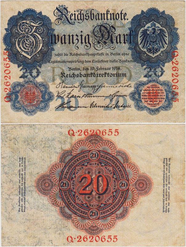 ** ALMANYA İMPARATORLUĞU 20 MARK 1914. ÇOK ÇOK TEMİZ., 29 gün önce satışa sunulmuştur.