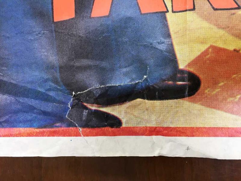 Sattığımız afiş / posterler dönemine ait orijinal ürünlerdir. Fotoğraflarda kondisyonları görebilirsiniz., Kondisyonlar temiz durumdadır. Aksi bir durum olduğunda ilave fotoğraf ve bilgi yer alacaktır. Kondisyon: Temiz. Fotoğrafta görüldüğü gibi altta küçük bir bölümde yırtılma olmuş ve şeffaf bantla arkadan onarılmıştır. Pek belli olmuyor.