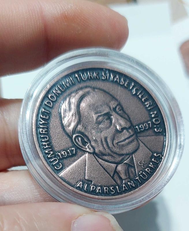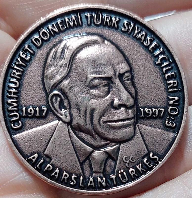 ALPARSLAN TÜRKEŞ ÖZEL BASIM HATIRA MADALYON Cumhuriyet Dönemi Türk Siyasetçileri Serisi – Alparslan Türkeş Hatıra Madalyonu (1917-1997) 2000 adet basımın 133’üncüsü BRONZ - KALAY ÇİL KAPSÜLDEDİR. FOTOĞRAFTAKİ MADALYA YOLLANACAKTIR.