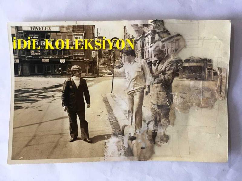 ALTAN ERBULAK'IN ORİJİNAL FOTOĞRAFI - ALTAN ERBULAK ve HALİT KIVANÇ CADDEDE İKEN ÇEKİLMİŞ BİR KARE - SİYAH & BEYAZ - 18 x 12 cm EBADINDA, 1970'LER (RESTORASYONLU), 10 ay önce satışa sunulmuştur.